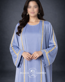 Ensemble élégant composé d’une sous-robe fluide sans manches et d’un kimono long ouvert, sublimé par de délicates finitions dorées. Sa coupe fluide et harmonieuse offre une silhouette raffinée, idéale pour les occasions spéciales comme pour un porté chic et pudique au quotidien.