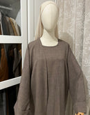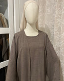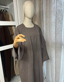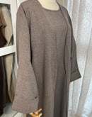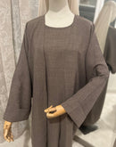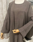 Ensemble composé d’une abaya débardeur et avec un kimono manches en fentes. Tailles unique . Tissu effet Lin .