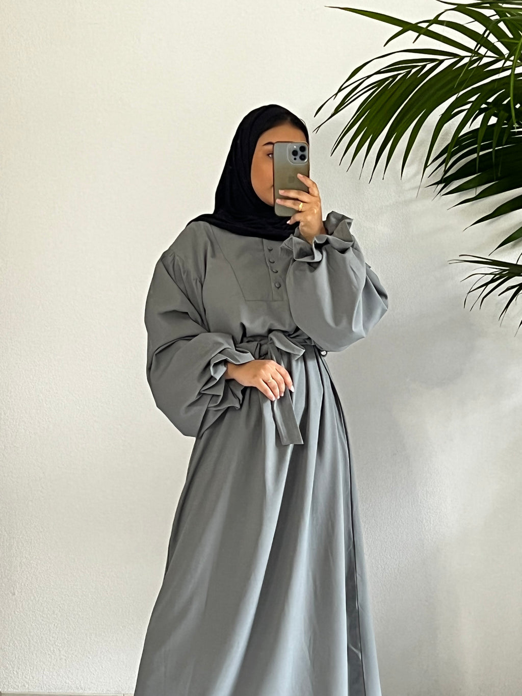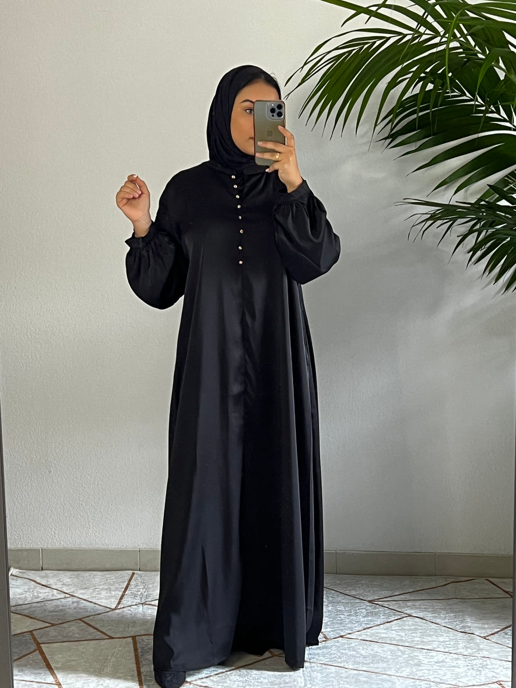 Robe marjana, coupe évasée et ample, opaque, detail au niveau des poignets