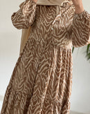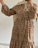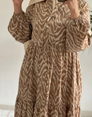 Robe à motif juste incroyable par sa qualité et sa coupe, la matière elle est juste exceptionnel, C’est une robe qui va à toutes les morphologie par sa coupe évasée.